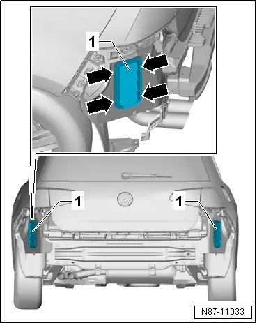 – Remove rear bumper cover → Rep. gr.63; Removing and installing bumper cover.