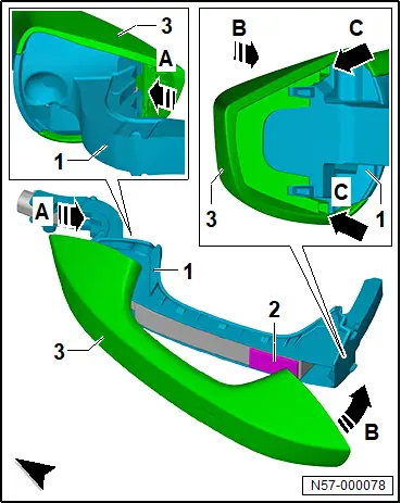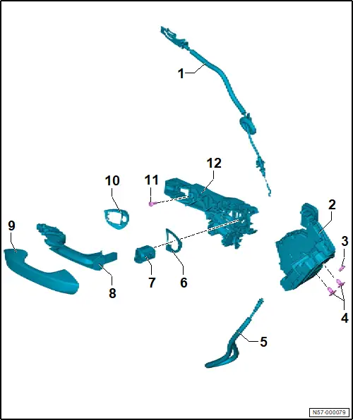 ❏ → Rep. gr.57; Assembly overview – exterior door handle [EX6]/[EX7]