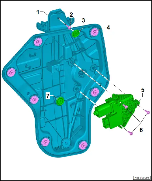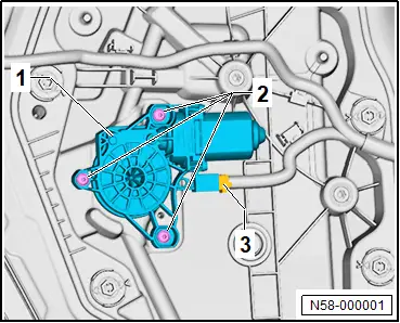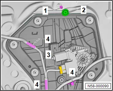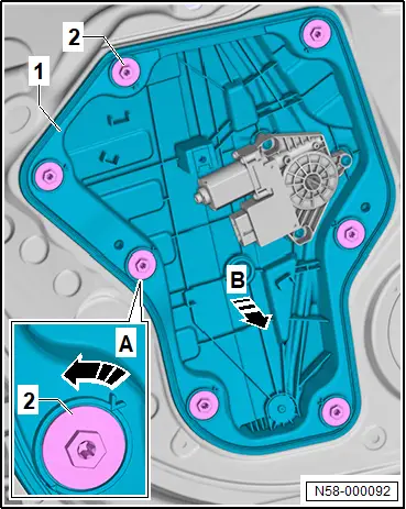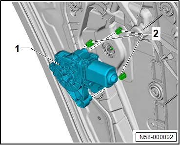 ❏ → Rep. gr.58; Removing and installing rear window regulator motor [V471]/[V472]