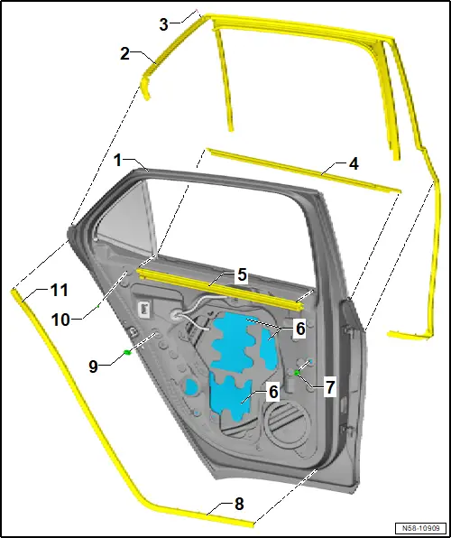 ❏ → Rep. gr.58; Removing and installing door joint seal