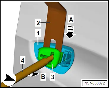 – Remove Bowden cable -2- from mounting bracket -1- -arrow B-.