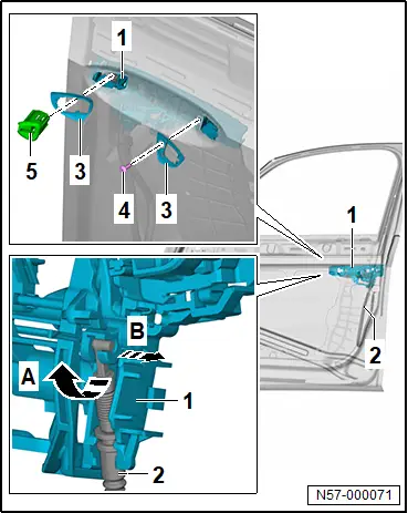 ❏ → Rep. gr.58; Removing and installing operating cable for interior door handle