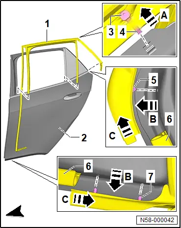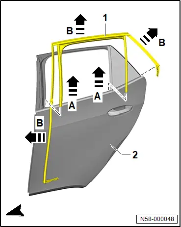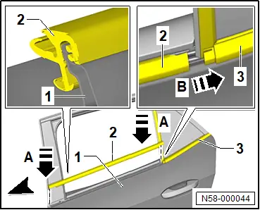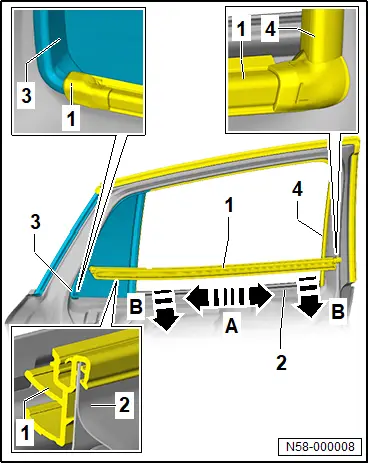 ❏ → Rep. gr.58; Removing and installing outer window slot seal