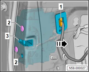 – Remove door lock → Rep. gr.58; Removing and installing rear door lock unit [VX83]/[VX84].