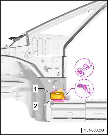 ♦ → Rep. gr.51; Assembly overview – A-pillar reinforcement
