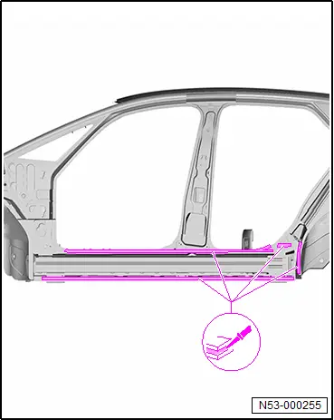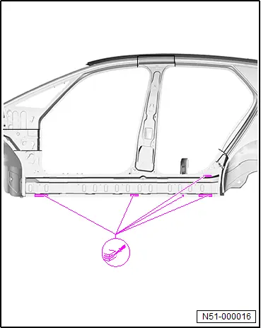 – Install B-pillar reinforcement → Rep. gr.51; Renewing B-pillar reinforcement.