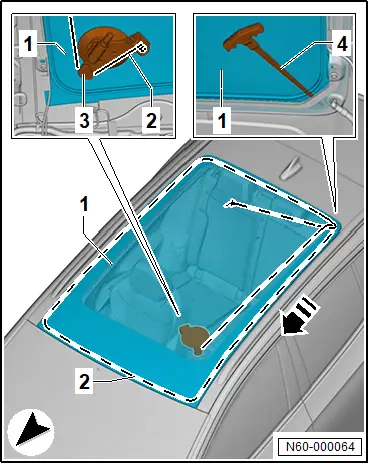 – Remove sun blind → Rep. gr.60; Removing and installing sun blind.