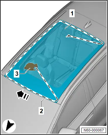 – Release frame with sun blind in rear area → Rep. gr.60; Removing and installing frame with sun blind.