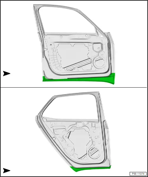 The marked areas have been treated with cavity sealant and must be resealed following repairs.