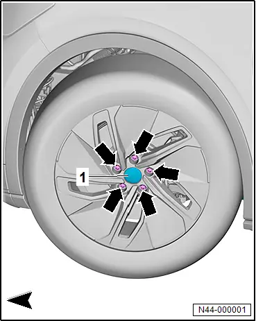 – → Rep. gr.44; Positioning anti-theft wheel bolts for steel wheels.